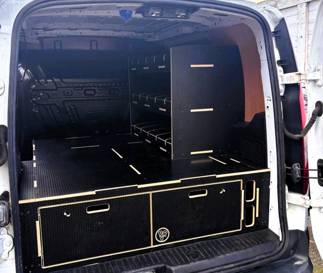 The racking and drawer unit for small vans is a durable, space-efficient storage solution designed to maximise organisation while keeping tools and equipment secure and easily accessible. Suitable for both SWB and LWB small work vans, this setup creates a stable and practical working environment built to handle daily trade use.