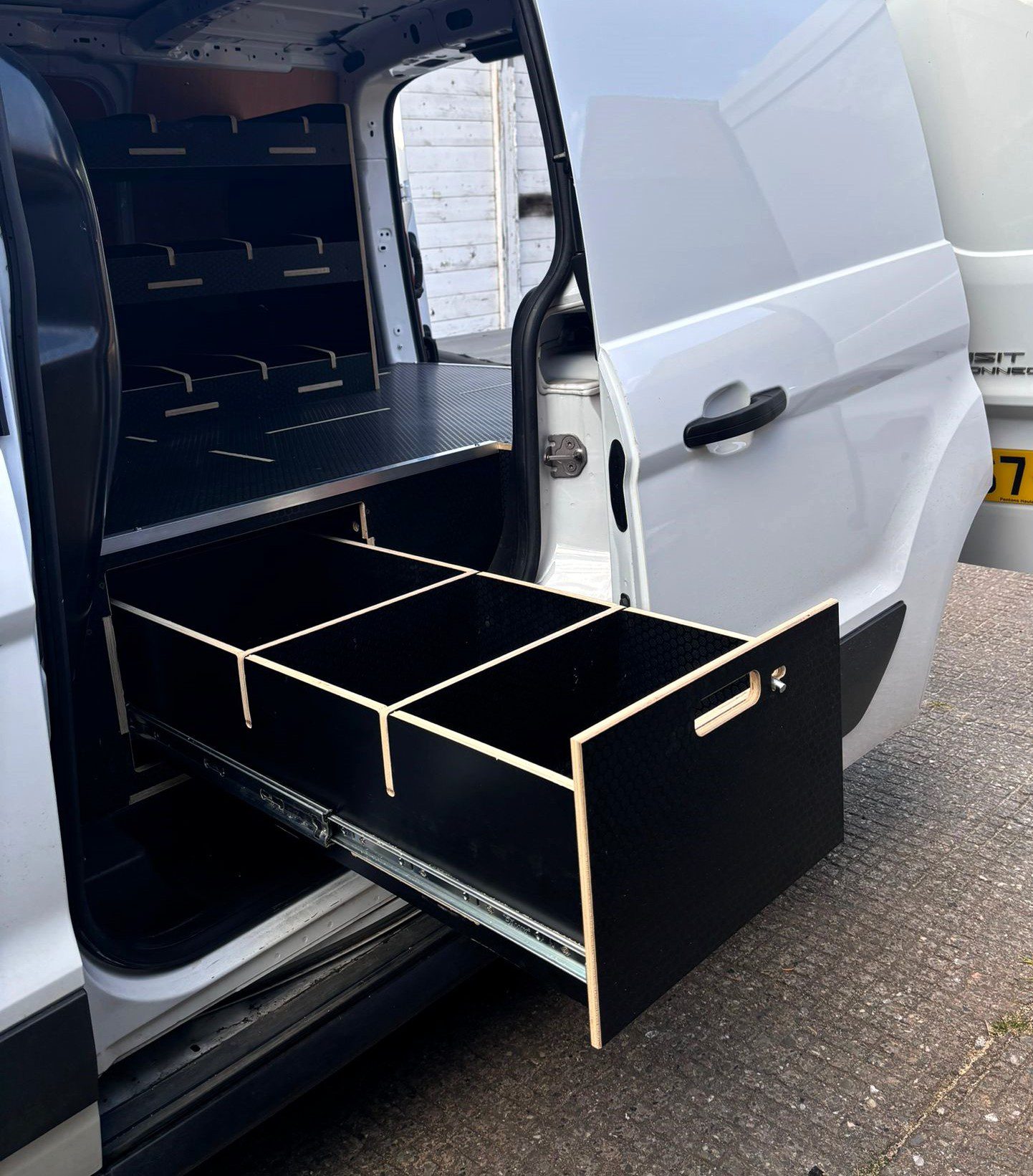 The three-drawer configuration offers structured storage for tools, fixings, and accessories, with interchangeable dividers ensuring items remain separated and organised. With one side drawer and two end drawers, the layout is designed to make the most of limited van space while maintaining excellent accessibility.